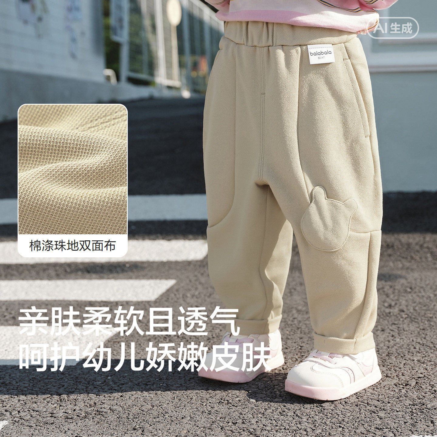 巴拉巴拉童装婴儿运动裤男童宝宝宽松针织裤儿童裤子2026春装新款