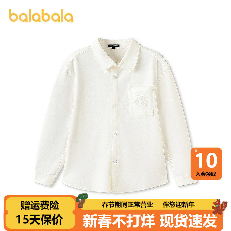 巴拉巴拉童装儿童长袖衬衫男童春装中大童上衣绣花精致纯色百搭