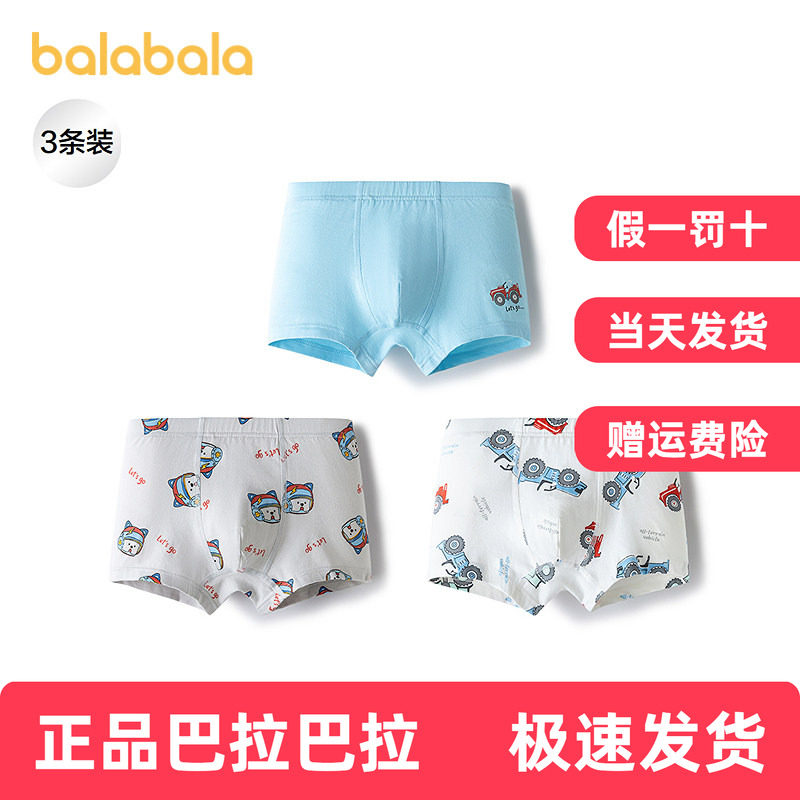 【balaOne】巴拉巴拉宝宝内裤平角纯棉儿童四角短裤男柔软三条装