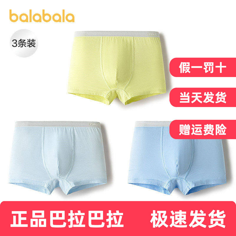 巴拉巴拉男童内裤平角儿童四角短裤大童宝宝不夹PP抗菌舒适三条装