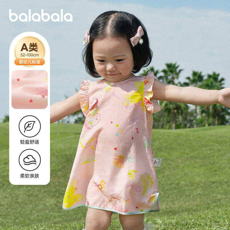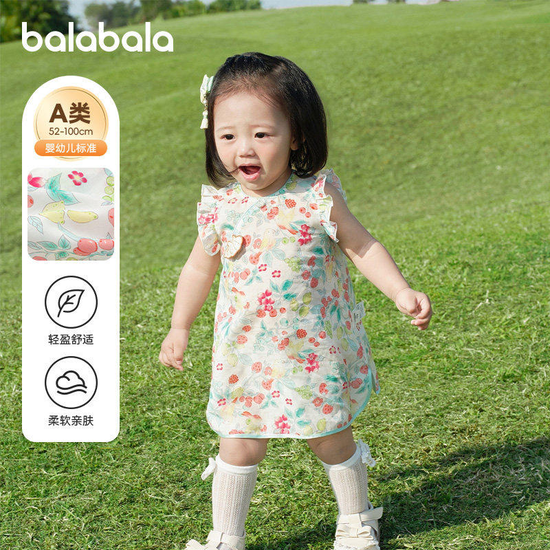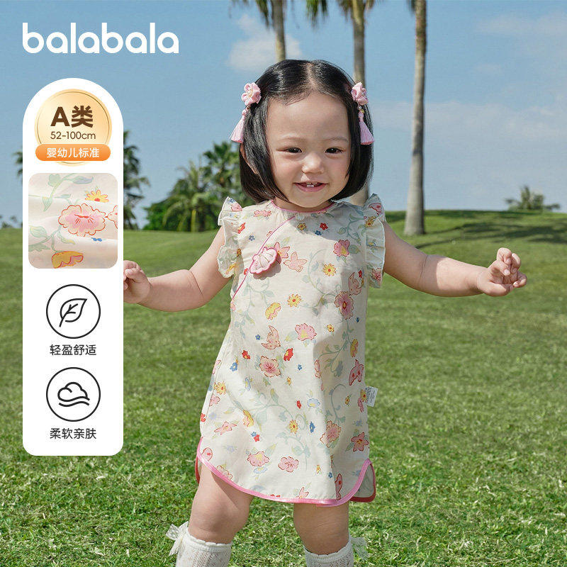 巴拉巴拉女童连衣裙婴儿裙子夏装2026新款童装宝宝国风甜美碎花裙