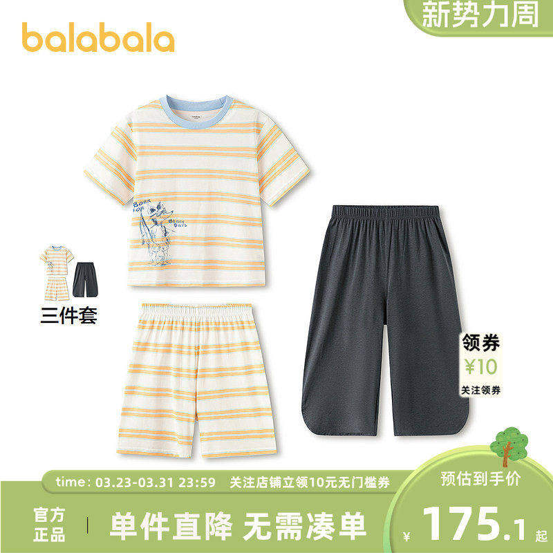 【商场同款】巴拉巴拉儿童睡衣套装夏季薄款空调服男童家居服舒适