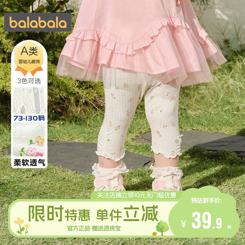 巴拉巴拉女童打底裤婴儿宝宝裤子夏装2026新款童装儿童防蚊长裤薄