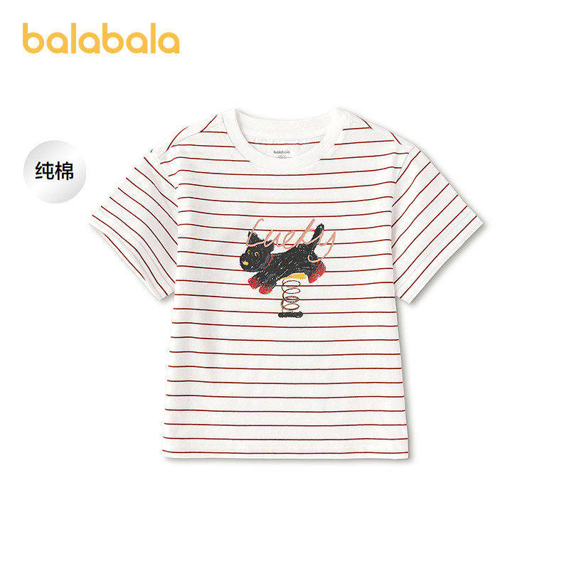 【商场同款】巴拉巴拉儿童短袖t恤男女童2026新款夏纯棉条纹上衣