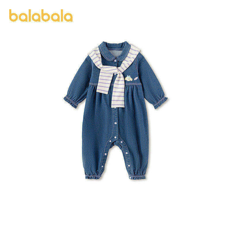 【商场同款】巴拉巴拉童装连体衣宝宝爬服2026新款春装婴儿牛仔衣