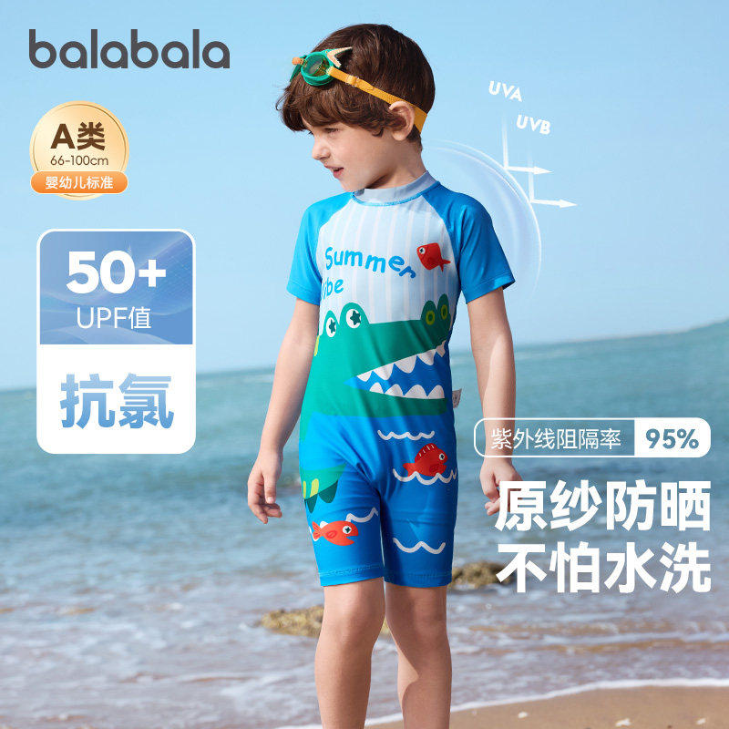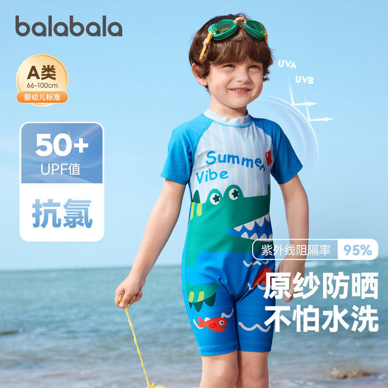 巴拉巴拉儿童泳衣男童女童宝宝连体泳装夏季小童沙滩防晒游泳衣潮